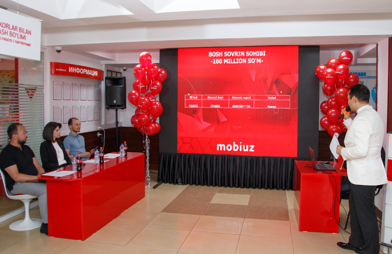 Mobiuz с первых лет своей деятельности проводит различные акции с возможностью выигрыша ценных призов. Только за последние 4 года более 170 абонентов компании выиграли свыше 3 млрд 400 млн сумов, а также 15 автомобилей и 4 поездки в Дубай.