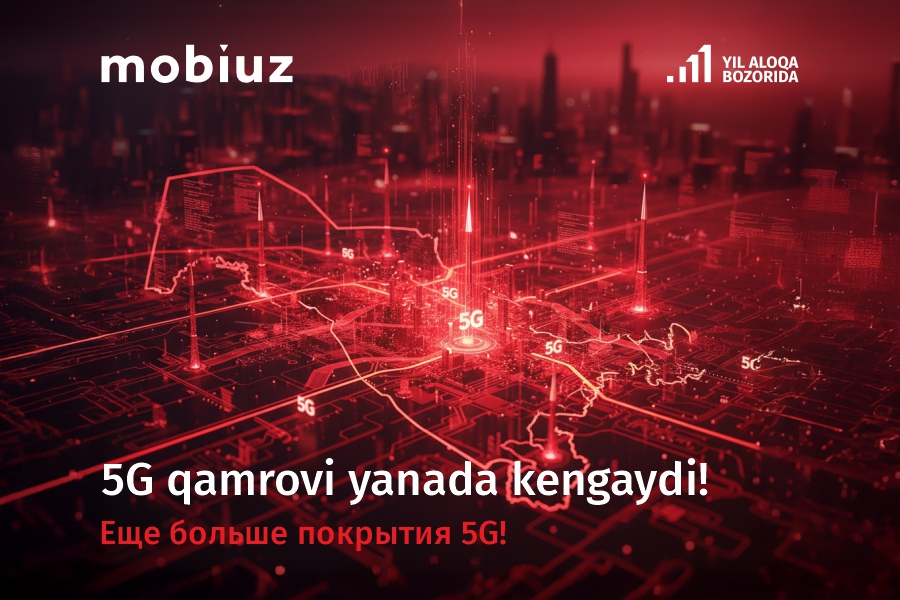 Mobiuz butun mamlakat bo‘ylab 5G tarmog‘ining qamrovini kengaytirishni davom ettiradi, bu esa muloqot, ish va hordiq chiqarish uchun yangi imkoniyatlarni yaratadi.