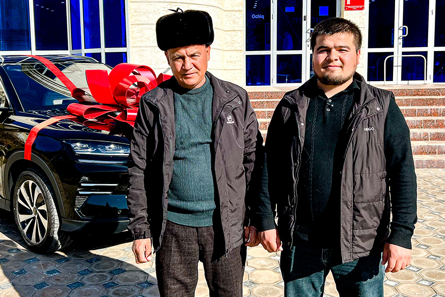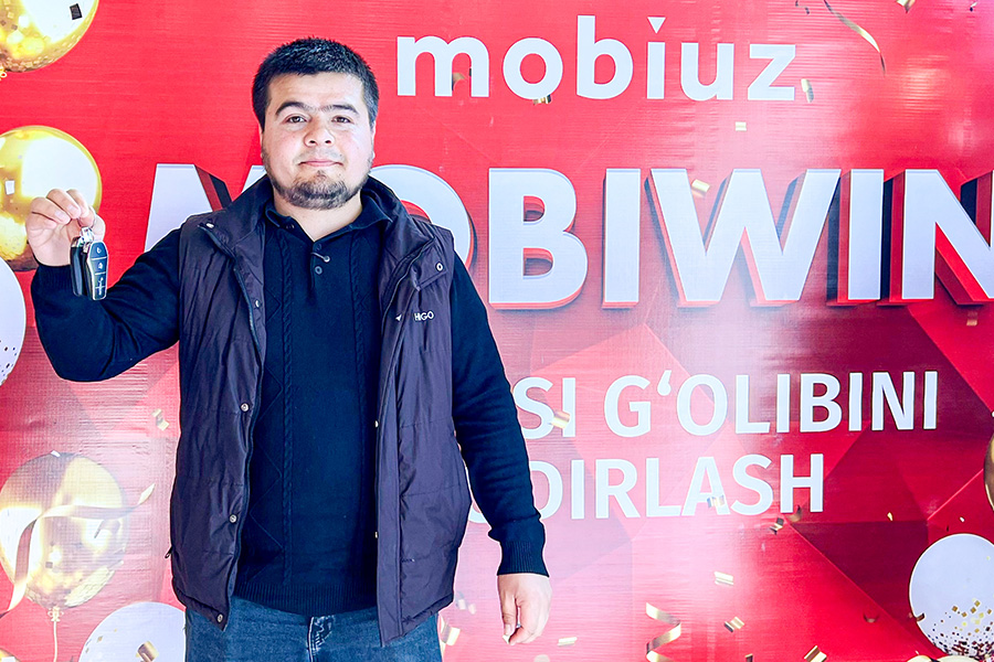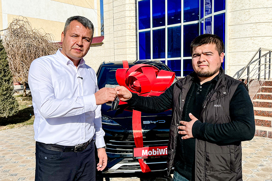 Mobiuz vakillari MobiWin aksiyasi g‘olibi Abbos Egamberdiyevga BYD avtomobili kalitlarini tantanali ravishda topshirdilar.